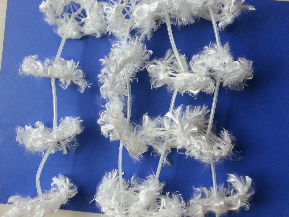 半軟性纖維填料 具有散熱性能高,阻力小,布水 布氣性能好,易長膜,又有切泡作用。它所用的材料有聚丙烯 聚乙烯制成,用于污水 廢水處理工程,配套于接觸氧化塔 氧化池 氧化槽等設備。規(guī)格直徑:150 180 200.規(guī)格可根據用戶而定。
