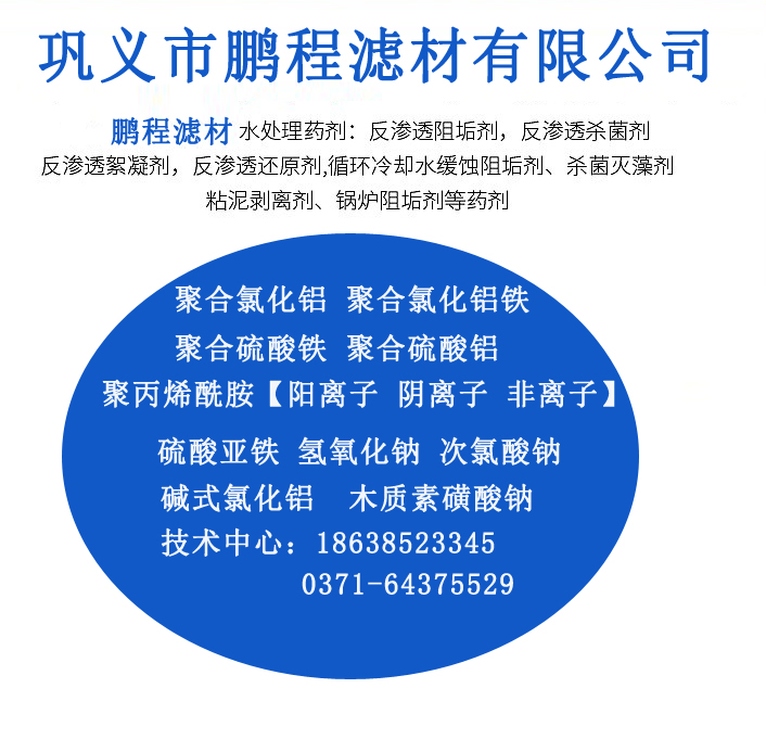 聚合氯化鋁 聚丙烯酰胺 聚合氯化鋁鐵 聚合硫酸鐵 硫酸亞鐵 聚合硫酸鋁 次氯酸鈉 氫氧化鈉 木質素磺酸鈉等水處理藥劑 ——工業(yè)級 食品級 飲用水劑 處理級——鵬程濾材產品 型號齊全 歡迎咨詢