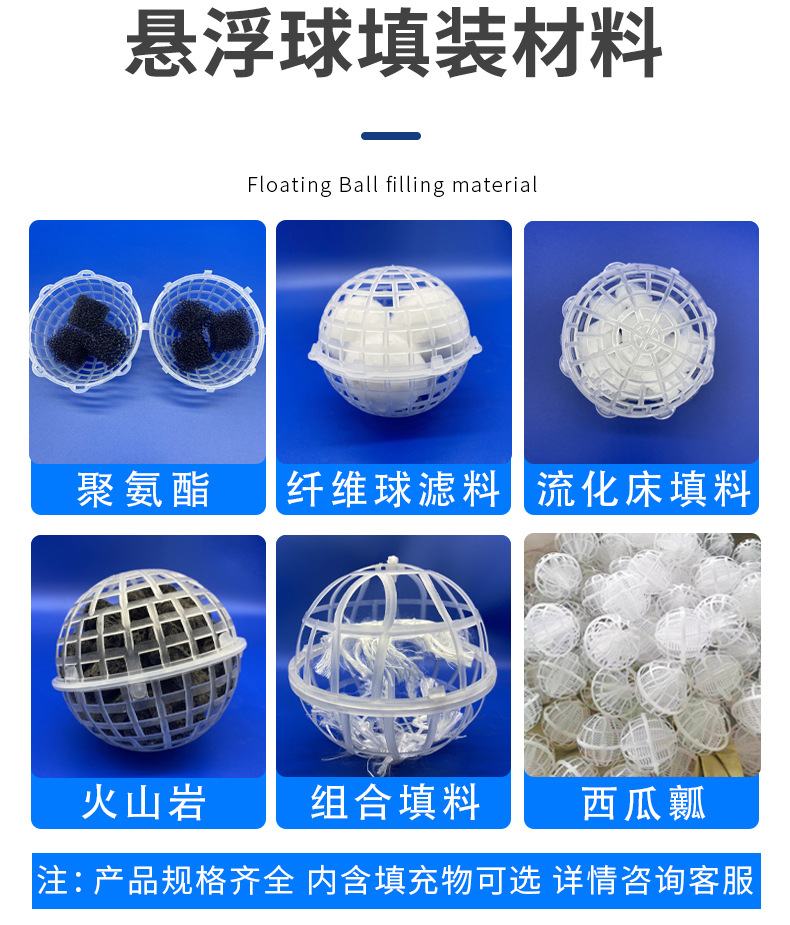 多孔球形生物懸浮球填料為什么也屬于一種組合填料,因?yàn)閼腋∏蛱盍暇哂腥Ⅲw結(jié)構(gòu),里面可以填充聚氨酯海綿 火山巖  陶粒 沸石 脫氮填料 纖維濾料等生物水處理濾料【填料】。